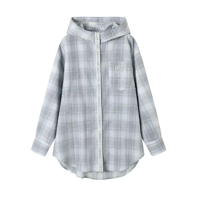 Sunscreen coat loose with a thin plaid shirt